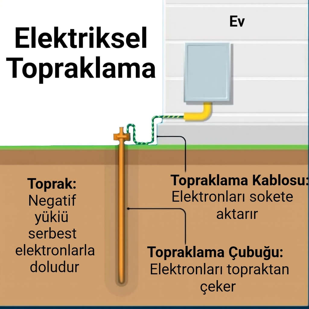 Topraklama kablosu, fazla elektronların en az dirençli yol olan toprağa geri kaçmasına izin vererek bunu önler.